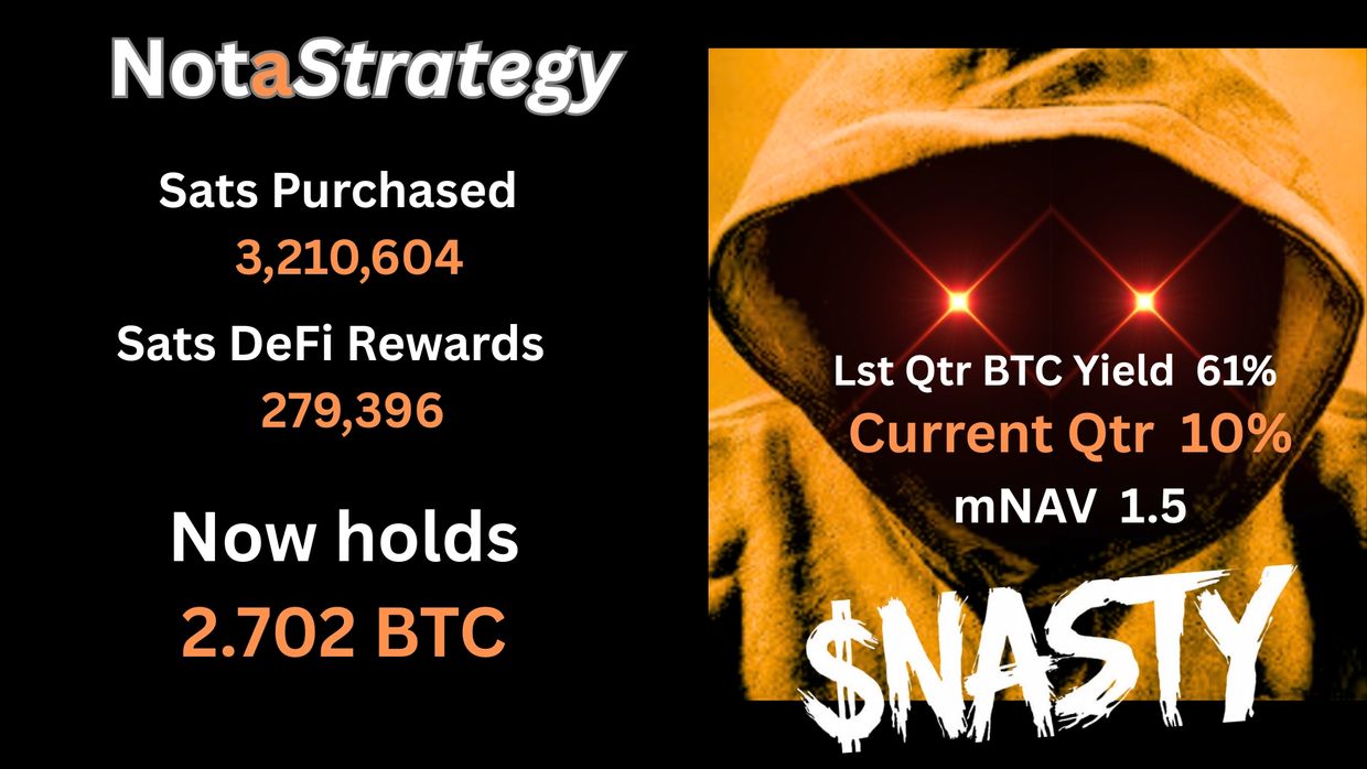 NotaStrategy ( $NASTY) is a Bitcoin Treasury Meme Coin first listed on $STX and now Solana.